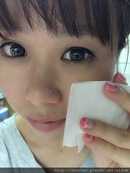 (可以再用乾淨的化妝棉擦掉,或是去洗臉)